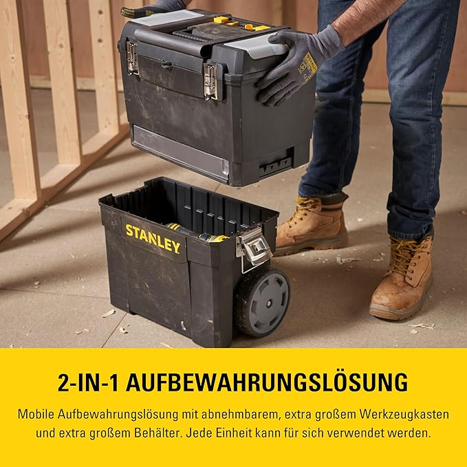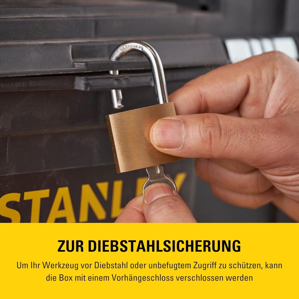 Noch mehr Stauraum mit dem Stanley Werkzeugkasten auf Rädern. STANLEY ist weltweit führend in der Herstellung von Handwerkzeugen, Elektrowerkzeugen und Zubehör. Schon seit über 170 Jahren entwickelt STANLEY Produkte für Profis, die nicht nur intelligent konstruiert, sondern auch strapazierfähig sind. Deshalb sind sie perfekt geeignet, um den harten Stallalltag zu überstehen.